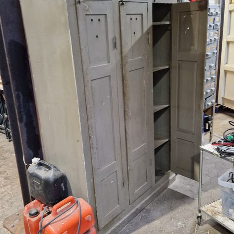 Skabet har en hældende låge og en udtrækkelig skuffe. Velegnet til opbevaring i forskellige miljøer, hvor der er behov for både adgang og mobilitet.
