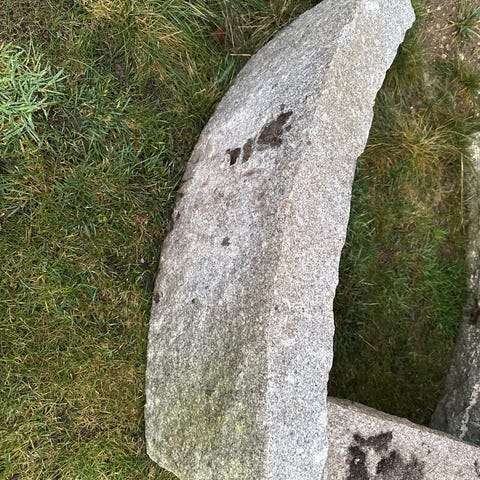 Buet granitsten fremstillet af granit, velegnet til havebrug eller som dekorativt element i udendørs områder.