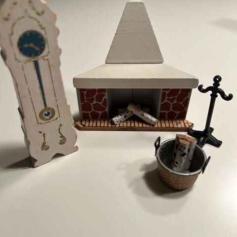 Miniature gulvur i træ til dukkehus.
