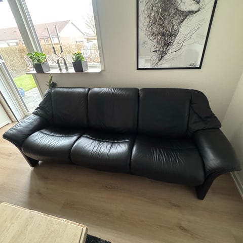 Se her - hvem kommer først - Stresless sofagruppe i sort læder
