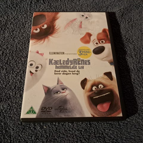 Kæledyrenes Hemmelige Liv DVD med bonusmateriale og 3-minutters kortfilm. Indeholder filmen om kæledyr og deres hemmelige liv, samt ekstra materiale som bag-scener og interviews.
