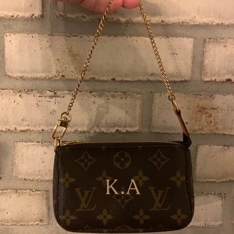 Louis Vuitton pochette accessoires taske i monogram canvas. Hele lynlåsen, læderflappen samt zipper er blevet udskiftet originalt af Louis Vuitton i Paris. Rigtig god stand. Uden strop. Dustbag og kvittering fra Louis Vuitton på udskiftningen medfølger. 21x13x4 cm.