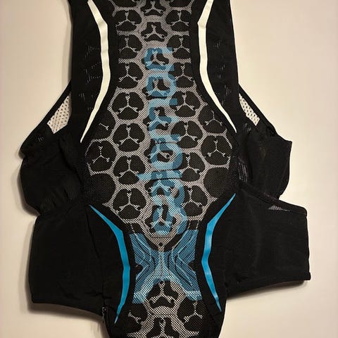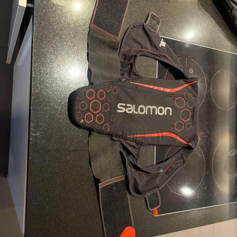 Salomon Flexcell3 herre rygskjold i sort med blå detaljer. Str L