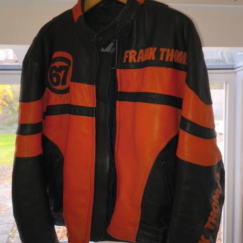 Mærke: Frank Thomas club classic. Str. UK 46, EUR 56. Skal beskyttelse på albuer og skuldre som kan tages ud samt ekstra lag på ryggen til beskyttelse.