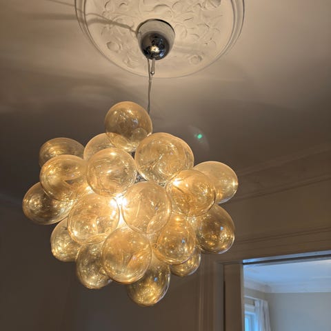 Lampens design giver et varmt og eksklusivt lys, og gør sig rigtig godt over spisebordet eller i stuen.