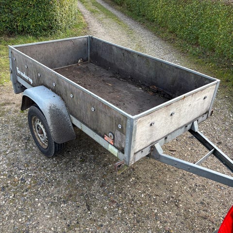 Trailer malet i camouflage, brugt men står i god stand, ingen huller i bunden, ingen registreringsattest eller nummerplade så den kan bruges som en fornuftig havetrailer.