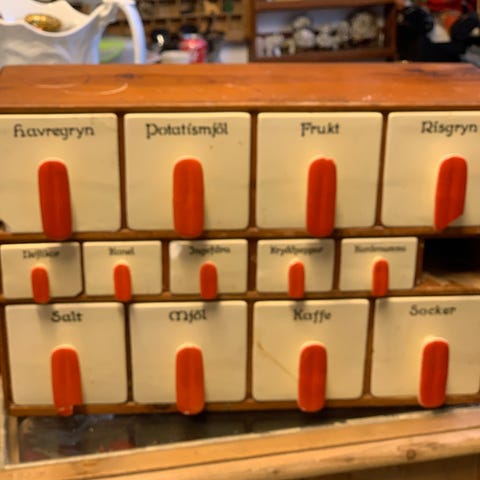 stor kasse med alverdens dødningehovede, fugle, lamper osv der er brugt mange penge igennem tiden på denne samling