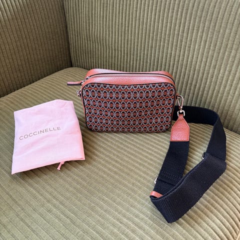 Beige Coccinelle håndtaske/skuldertaske i kraftigt læder med taske/pung. Pose medfølger.