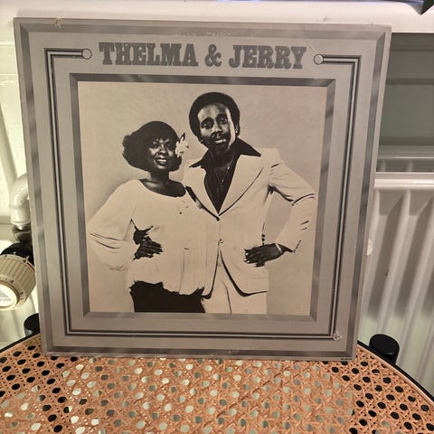 Thelma Houston LP plade med cover, viser kunstneren iført lyseblåt tøj. Pladen indeholder musiknumre fra Thelma Houston.