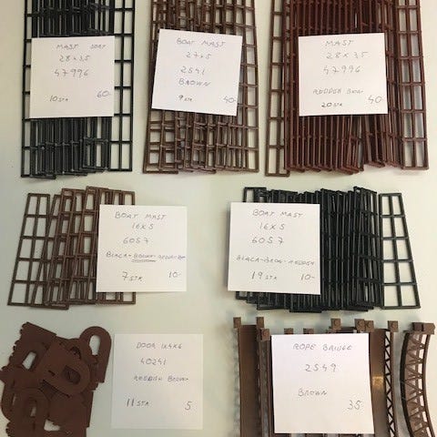 LEGO piratskib / LEGO sørøverskib, byggesæt med mange dele, jf. de sorterede bunker på billederne.