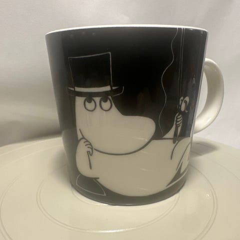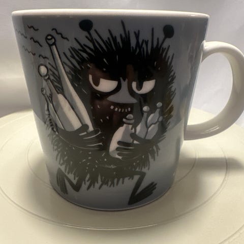 Motivet viser en af de klassiske Mumi‑figurer i mørke nuancer – perfekt til samleren eller som en hyggelig kop i hverdagen.