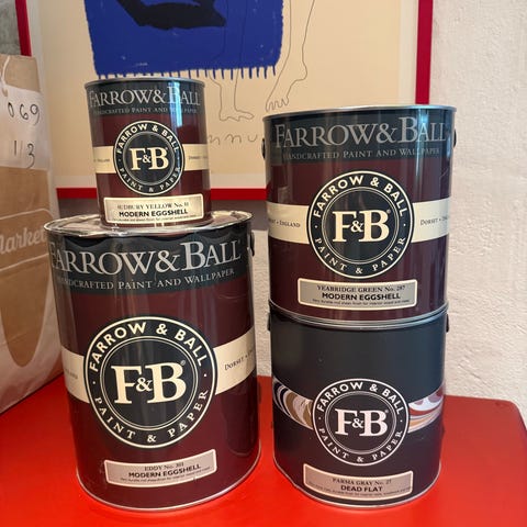 Rigtig god kvalitetsmaling, som bruges af feinschmeckere- farve Farrows Cream nr, 67 - se også farvebeskrivelse på foto. Malingen er til brug på indendørs træværk. Købt hos Tapet Caféen i Hellerup og malerbøtten har ikke været åbnet. Nypris: 1600 kr.