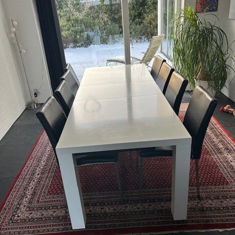 Spisebord (hvid bordplade på sort stålstel) købt hos BoConcept for ca. kr. 5.000.
