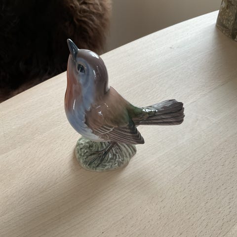 Mågefinke fra Bing & Grøndahl, nr 1707. Designet af Dahl Jensen, der var modelmester hos B&G fra år 1897 - 1917. Perfekt stand. H: 6,3 cm L: 11 cm. Kr 595,-