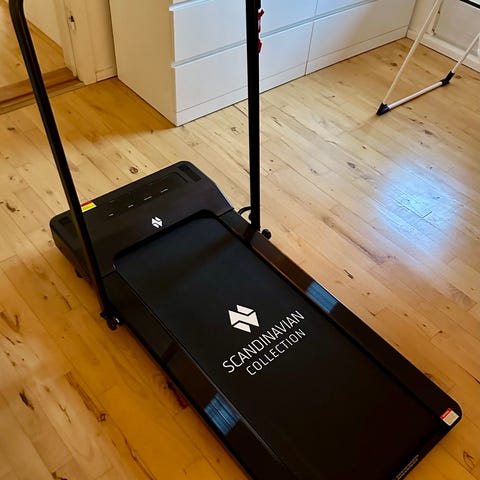 Gå/Løbebånd elektrisk med en motor på 2,5 HK, hastighed op til 6-10 km/t, digital visning af tid, distance, kalorier og hastighed. Løbebåndet har en støjsvag motor med under 35 dB, måler 115 cm x 53 cm x 33 cm, vejer 120 kg og har en løbeflade på 35,5 cm x 91 cm. Farven er sort og rosa. Produktet inkluderer fjernbetjening, kontrolpanel med LED-skærm og er designet til nem opbevaring og pladsbesparelse.