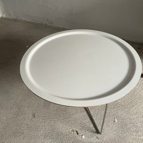 Praktisk lille bord med aftagelig bakke øverst og ekstra hylde nederst til magasiner, bøger eller dekoration.