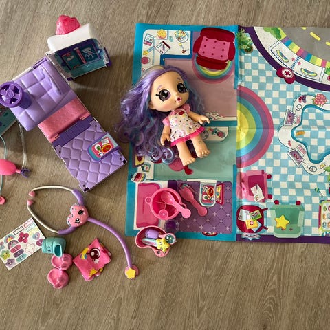 Med det medfølgende legetøjsudstyr kan barnet passe og pleje Rainbow Kate, præcis som en rigtig lille læge. Temperaturen kan måles med termometeret, hun kan svøbes i tæppet, og hjertet kan lyttes på med Shopkins-stetoskopet. Når hendes ben renses med vand, forandres de og viser, hvordan hun langsomt får det bedre. En leg, der både underholder og styrker barnets fantasi og omsorgsfølelse.