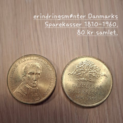 5 stk poser 2 øres og 2stk 1 øres . Desuden sælges sparebøsse 250kr . Skyd pengene ind via flyveren .