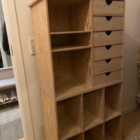 Kan både bruges som væghængte skabe eller med ben under (der er pt ben på 2 af dem).