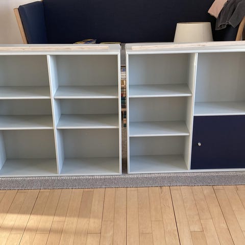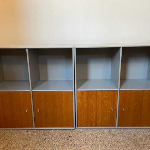 Montana reol modul i antracit grå . Reolen består af fire rum, heraf 1 med glas låge og alu. Der er yderligt et hul i nederste ventre rum fra højtaler ledning. Dette kan ikke ses hvis der evt. står bøger i dette rum. Reolen har brugs spor og en maling vil være godt. Derfor den lave pris
