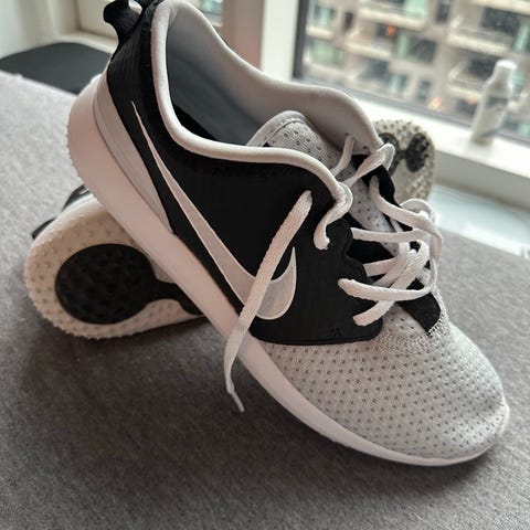 Skoene er købt i forkert størrelse og er desværre for små til mig. Derfor er de ikke blevet brugt og fremstår som nye. De har primært stået i skabet. Passer til både mænd og kvinder og er i den velkendte gode Nike-kvalitet.