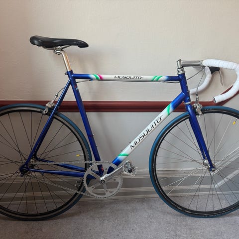 Velplejet racercykel med enkelt ridser. Brugt moderat et par somre. Model Willier La Triestina 2012 Shiamo 105 White racing bike S 10 speed. Med røde Look Keo classic pedaler.