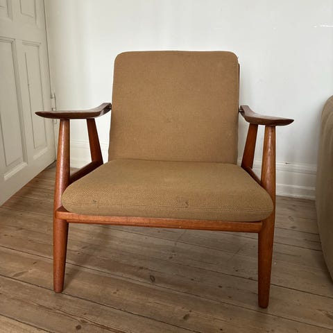 Fritz Hansen Hans J Wegner lænestol med skammel rød