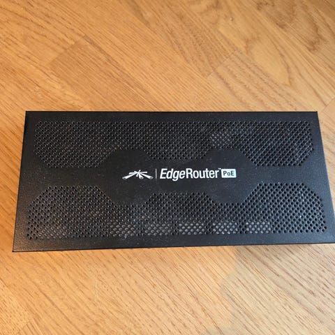 Ubiquiti EdgeRouter router med flere Ethernet-porte. Enheden understøtter netværksforbindelse via kablet LAN og er designet til netværksadministration og routing.