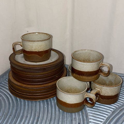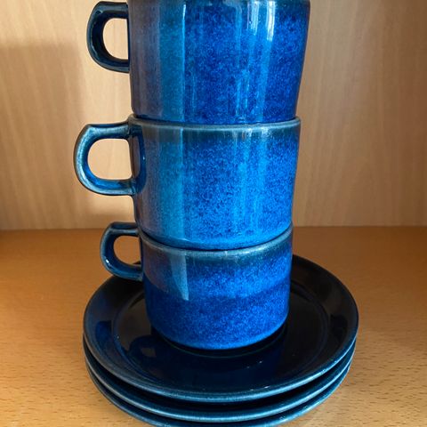 Stentøj, Spisestel, Desirée Denmark, Vesterhav North Sea .Glaseret blåt stentøj. Helt spisestel til 8 personer. Alt sælges, gerne enkeltvis. Glaseret stentøj. Flere dele har aldrig været brugt. Kaffe/, tekop m. underkop, salt og pebersæt 100 kr., sennepskrukke 75 kr., sukkerskål og flødekande i alt 150 kr.