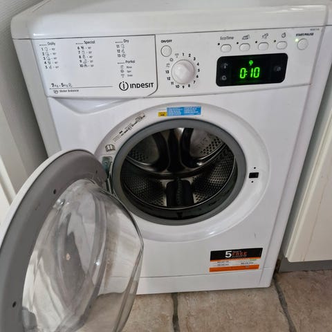 Hoover Frontbetjent vaskemaskine med frontbetjening. Maskinen er ældre men fungerer godt