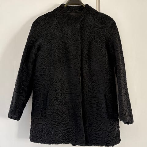 DAY Birger et Mikkelsen ‘limited edition’ pelsvest af karakul (vist nok Swakara) i str 38. Hægtelukninger og lommer.
