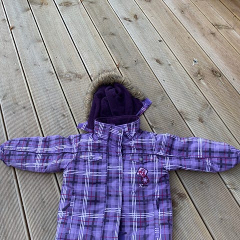 Hætten kan tage af og så har den praktisk snefang i ærmerne.