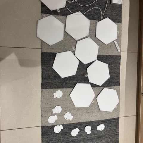 9 stk Nano Leaf Tiles i god stand. Alle fungerer perfekt og alt tilbehør medfølger.