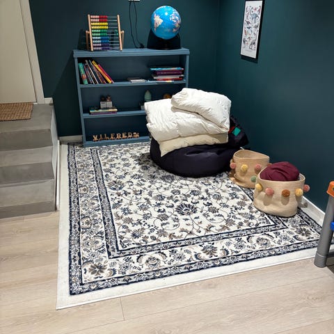Tæppet er fremstillet i 100% polypropylen og har en blød og tæt struktur - som god kvalitet ryatæppe. Bagsiden er fast vævet, så tæppet ligger godt på gulvet.