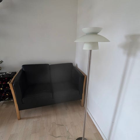 Nyere stander/læselampe i gammel stil,krølskærm i mat glas.