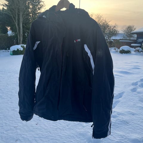 Master skijakke i sort farve dame str 40. Jakken har flere lynlåslommer, hætte med justerbar snor. Materialet er designet til at modstå sne og fugt, hvilket gør jakken egnet til skiløb og andre vinteraktiviteter. Der udvendig lomme til liftkort. Indvendigt snefang. Og indvendig lomme til skibriller. Alt ok bortset fra en lynlås til den ene lomme. Derfor denne lave pris.