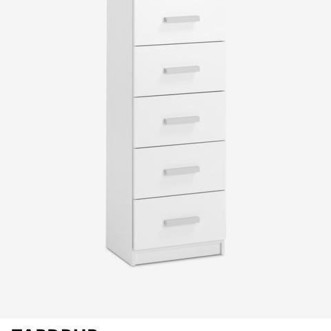 More details https://jysk.dk/opbevaring/kommoder/kommode-tapdrup-5-skuffer-smal-hvid