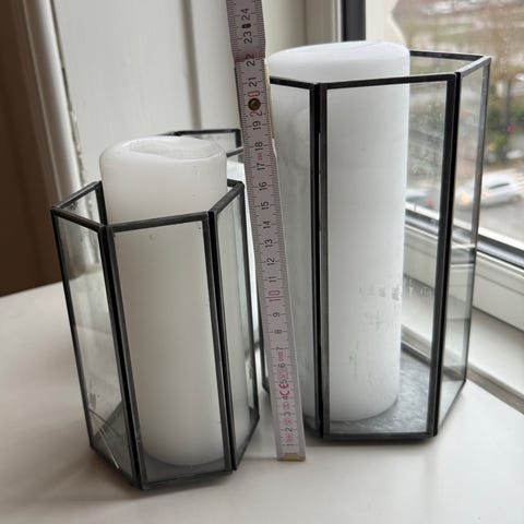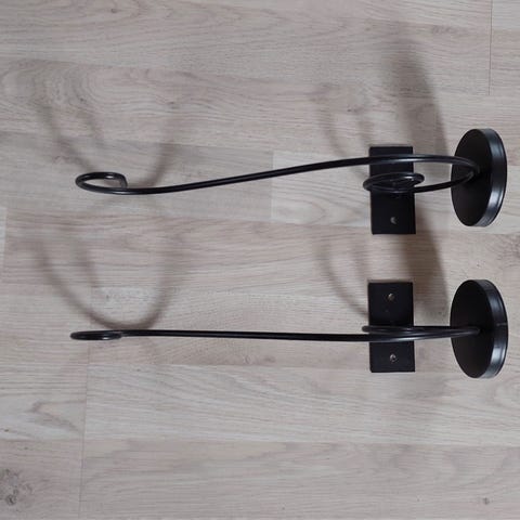 Væghængte holdere til bloklys i sort metal, aldrig været opsat/brugt. Pris er for alle 4 stk