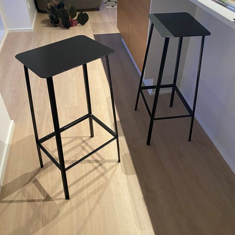 Virkelig lækre barstole i rå stil i pulverlakeret jern.