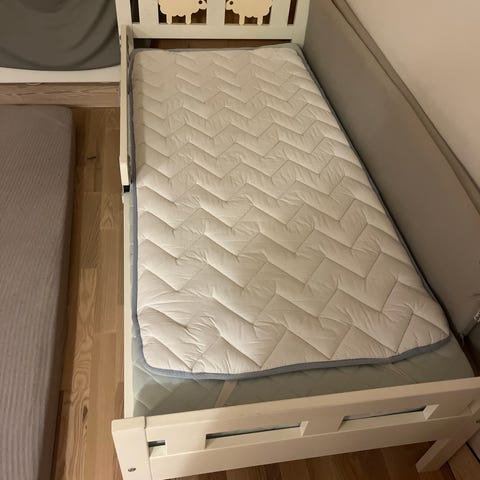 Vores datter har været utrolig glad for denne fine Songesand seng fra IKEA. Nu er hun vokset fra den, synes hun selv, da hun er blevet teenager. Madras medfølger ikke. Sengen er ca. 6 år gammel.