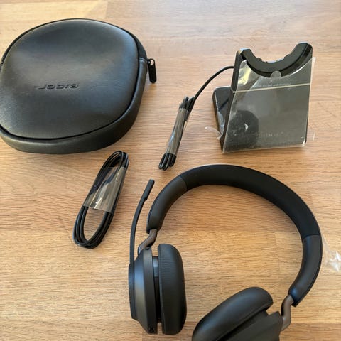 Jabra Evolve2 85 trådløse høretelefoner med støjreducerende funktioner. HæI uåbnet original emballage. Aldrig brugt. Designet til professionel brug med fokus på lydkvalitet og komfort. Understøtter trådløs forbindelse og er kompatible med flere enheder.