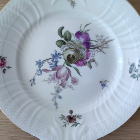 Royal Copenhagen lyserød Flower Emblem tallerken, flot stand og 1. sortering.