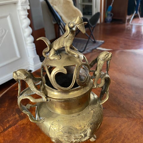 Sølvbelagt rygelse kar med skål ,sølv på messing. Røgelse kar er 13 cm i dia