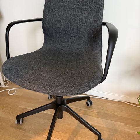 Flot og klassisk kontorstol fra IKEA. Model Långfjäll med vippefunktion og mekanisme til indstilling af højde for individuel komfort.