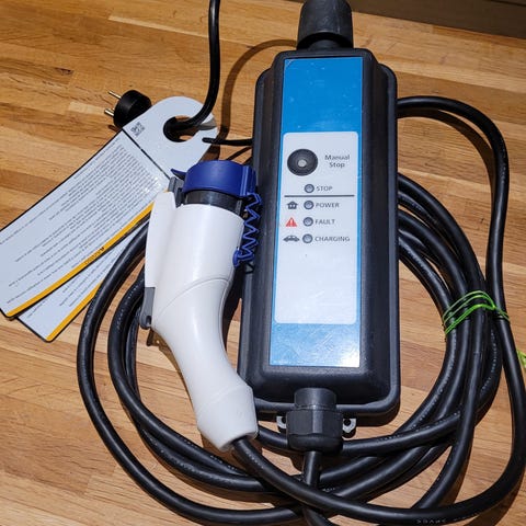 Original Renault lader til stikkontakte, til alle biler med type 2 stik, lader med 10amp, dvs. 2300w med 5 mtr kabel mellem lader og bil