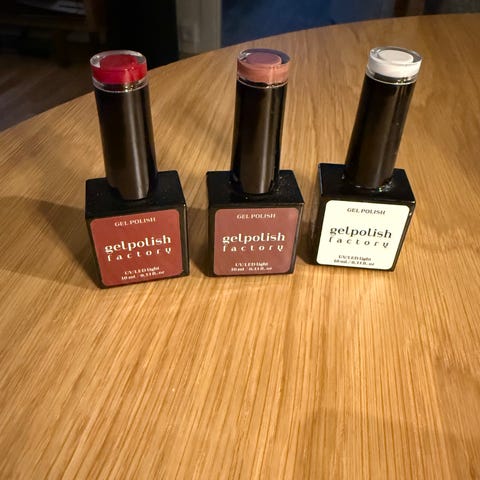 Sæt med forskellige gelpolish flasker i flere farver, herunder grøn, orange, pink og lilla. Indeholder også tilbehør som negleklæber, dehydrator og primer fra mærker som Beetles, Morovan og Morgan. Derudover medfølger forskellige neglekunstpensler, dekorationsmaterialer og neglefilere. Produkterne er velegnede til neglepleje og nail art.
