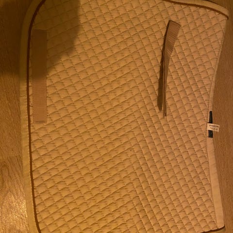 Sadelunderlag i brun farve med quiltet mønster og hjerte-design. Passer til brug under sadel ved ridning for at beskytte hestens ryg og sadlen.