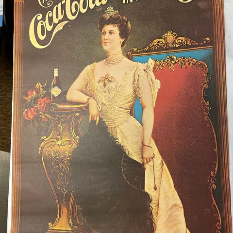 Classic Coca-Cola "Hamilton King Girl" advertisement in a decorative gold-finish frame. This is a vintage reproduction of the original 1909 artwork.
