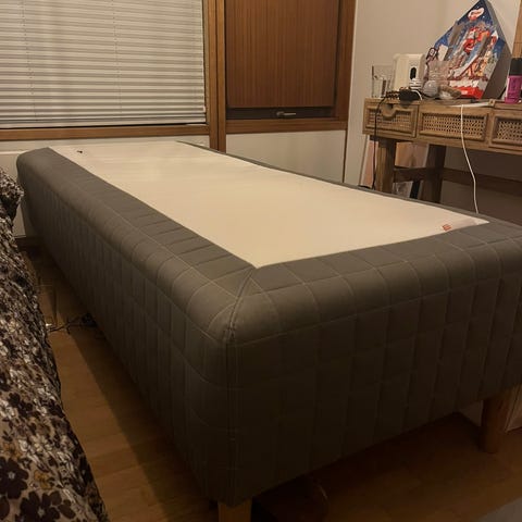 IKEA seng/boxmadras. Den er kun et par år gammel og generel i god stand. Sengen har dog været anvendt på teenageværelse, og har fået nogle pletter fra sminke (se billederne). Men det vil jo ikke ses, når der kommer lagen over, så måske den er noget for dig. Vi er ikke rygere og har ikke indendørs husdyr.