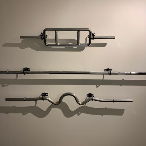 2 stk. metal vægtstænger, med tilhørende spændelåse, i krom. Stængene måler 168 cm i længden og har en diameter på 3 cm, selve vægtskivedelen er 33 cm lang. 100 kr. pr. stk.